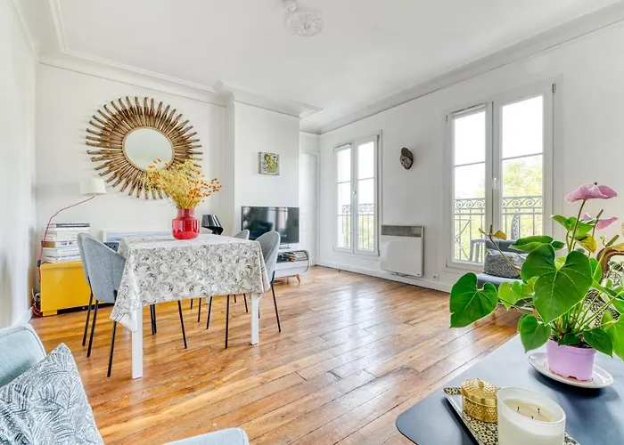 Apartmán Stunning Apartment 2Br + Balcony + Nice View nabízí kompletní kuchyni i pokoje s místností na posezení, televizí a TV s plochou obrazovkou se satelitními kanály. Stanice metra Jaures je 5 minut chůze od ubytování.